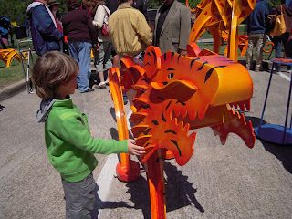On Friday night we got there at 6 to meet our friends and by 6:30 the line was out the door, the band was playing and tables were filling up. Jacob knows the drill by now and happily wolfed down his chicken strips, side of corn and milk before heading off to the playground. And that’s when he saw her. Taylor From School. Five minutes later I look over and Jacob and Taylor are holding hands – it was the cutest thing ever and I did not have my camera! The two of them held hands and ran all over the place the whole night – it was totally adorable. I have never seen him hold hands with a girl before. He was sort of flushed and excited and I totally remember that feeling from when I was a kid. Later, while I was convincing Bella that she could not slide down the rock wall; Jacob disappeared (for all of like a minute). It scared me but we knew where we would find him, inside sitting with Taylor’s family. Sure enough there he was, at her side, eating French fries, drinking soda and still holding her hand. Oh how they both cried when it was time to go. To get his mind of of it, once we got home Will let him play in the backyard for a few minutes with a flashlight - he really loved that. They just ran around shining the beam at each other. Four year old are fun that way.