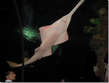 There were a lot of really cool things at the aquarium but it was a hard place to take a lot of pictures because of being dark and all the glass. In the center of the exhibit is a section where you can pet stingrays. Jacob really enjoyed that part, Bella, normally my adventurous one, wanted nothing to do with it.